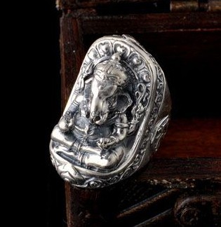 Handmade Silver Garnesa Fortune Buddha Ring for Men